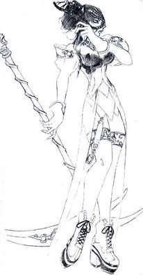 A member of the Imperial House of Nellens. Whether she is Dragon-Blooded herself is unknown. She appears as a regally beautiful young woman with black hair. Her hairstyles are usually extravagant. Her first appearance in the chronicle depicts her with a rather unique style. It was braided and styled to fit over her face as a sort of mask (for a look at where I got the idea, check out the cover to Bjork's latest album - Medulla). She wields an ornate scythe in battle. It's blade is purest wrought silver and the staff is forged of gold and white jade.