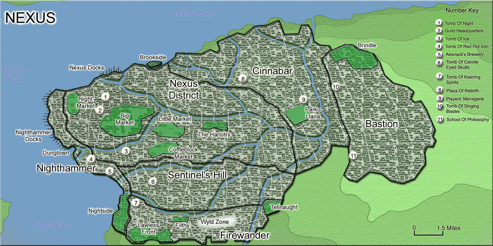 This is a collaborative wiki-project, along similar lines to the Lexicon_Of_Elder_Days or WhirlwindBrushMethod, whereby the wikizens will add details to the insane city that is the centrepiece of so many Exalted chronicles. The goal of the Nexus Project is not to map the city; if anything, this will make it even more confusing and unmappable, since there will (hopefully) be many contributors. (However, if you don't feel like trying to search this confusing list of neighbourhoods, there is an Index that will allow you to try to find something specific.)